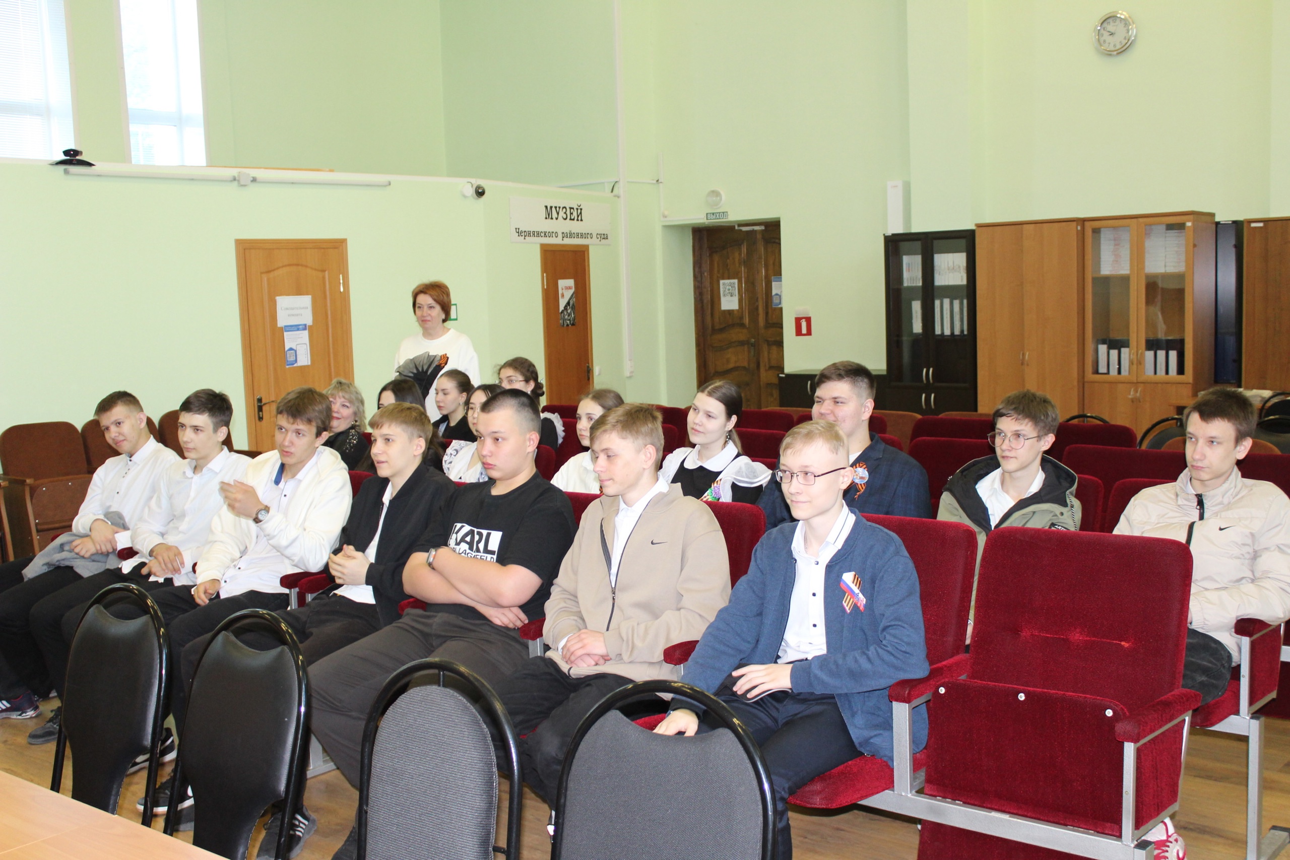 30 апреля 2025 г., в рамках правового просвещения учащихся, судьей Чернянского районного суда Юденковой Т.Н. проведено занятие с учениками 10 классов МБОУ «ЧСОШ № 1 с углубленным изучением отдельных предметов» на тему «Трудовые отношения с несовершеннолетними». В ходе проведения лекции судья Юденкова Т.Н. ответила на интересующие учеников вопросы, касающиеся принципов работы судебной системы России, категориях гражданских и уголовных дел, рассматриваемых районным судом, а также особенностей производства в суде с участием присяжных заседателей, полномочиях судьи и требованиях, предъявляемых к кандидатам на должность судьи. Ученикам рассказали, где во время судебного заседания по уголовному делу располагается судья, государственный обвинитель (прокурор), потерпевшие, свидетели, а также, где содержится подсудимый, находящийся под стражей. Также учащиеся посетили музей Чернянского районного суда. Ученики узнали об истории суда, председателях и судьях, работниках аппарата суда, работавших в суде в годы Великой Отечественной войны, а также вынесенных в 1943 – 1944 г.г. приговорах и решениях.